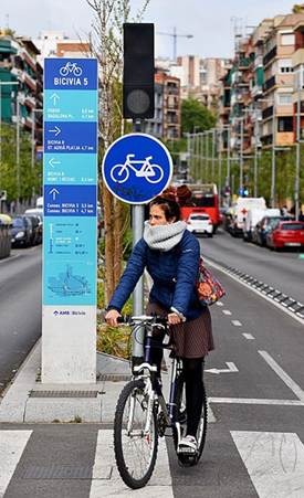 Electric charging station, and metropolitan cycleway network ‘Bicivia’. Images: Àrea Metropolitana de Barcelona.